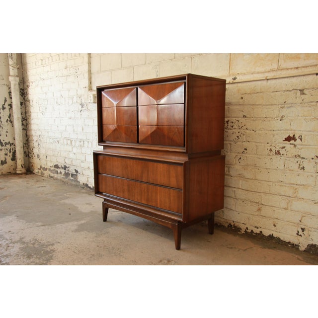 United furniture diamond collection tall dresser. The long, danish style profile beautifully compliments the proportions of a flat screen tv. Features of this piece include a solid walnut frame, book matched veneer, and nine drawers for plenty of storage. 5 out of 5 stars. <sold> this iconic triple dresser from the diamond series by united furniture has fantastic sculpted drawers and gorgeous walnut wood grain.